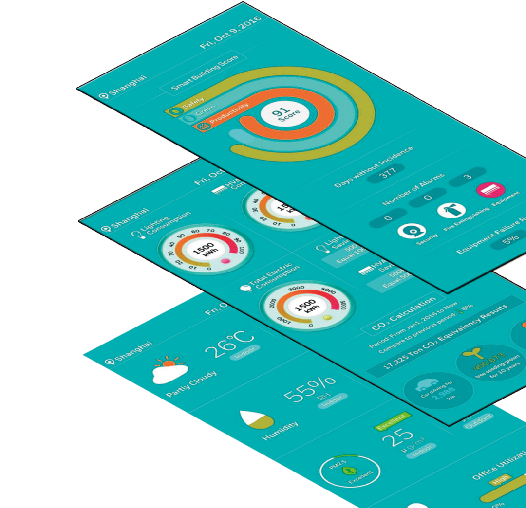 提高员工健康: 通过智慧环境管理(AIEV),实时监测室内外环境的温度、湿度、PM2.5等指标,为企业提供准确的环保数据,并通过空间大脑(AIHUB)进行实时调节,以保障员工的健康与安全。